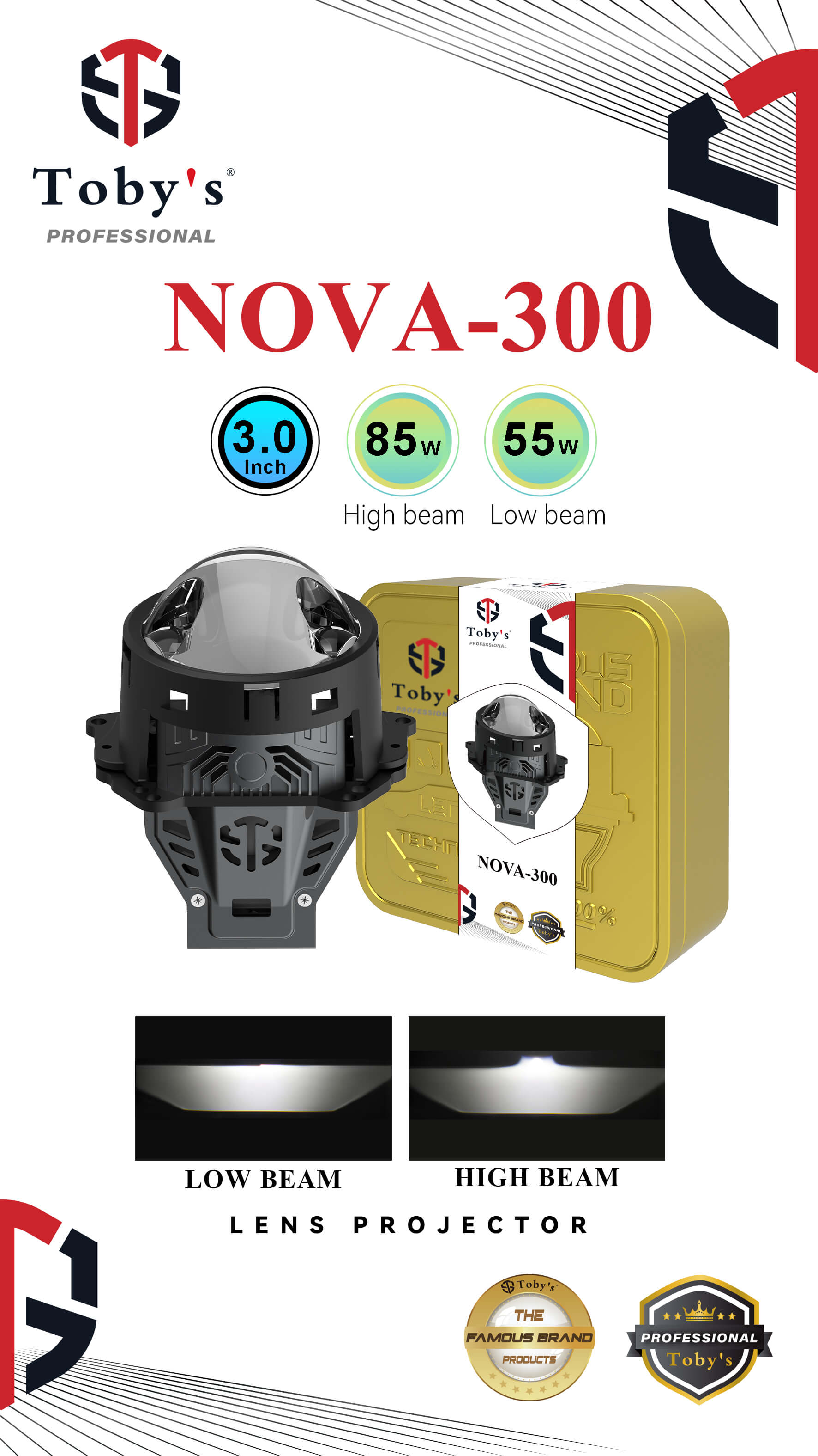 9-32V DC 5.8A/12V,2.9A/24V 3570 1pcs 5050 3PCS L:55W H:85W L:2550Lm(Raw Lumen) H:4650Lm(Raw Lumen) Lx:-Lx/10M Flood/ 6000±500K Aluminum Housing,Glass Lens